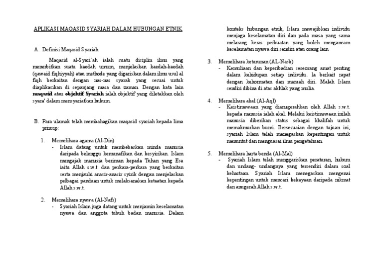 Memelihara akal dalam maqasid syariah bermaksud menyuburkan akal dengan menimba ilmu pengetahuan dan menjaga akal dengan mengelakkan daripada mengambil perkara usaha dalam menjaga keturunan. (b) prinsip syariah yang lima. Agama menjadi pemisah kualiti sebenar seorang muslim dan amat berkait rapat dengan aspek akidah. This is done through the interpretation of informant statements. Maqasid syariah as a performance framework for islamic.