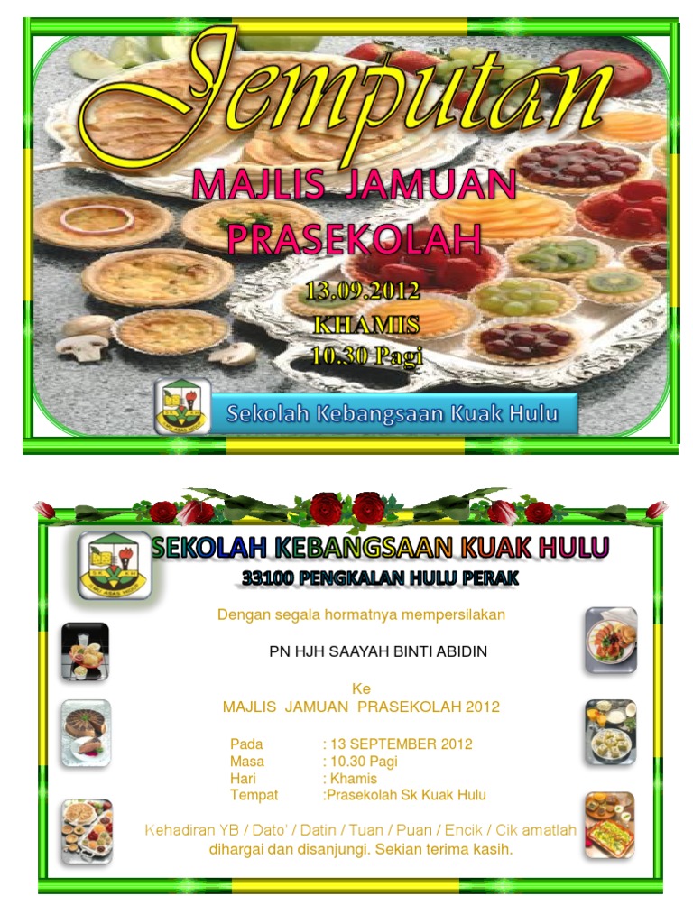 Buat jemputan dalam talian, pesta ulang tahun, jemputan perkahwinan, krismas, hari valentine, kad terima kasih, majlis graduasi, dll. Kad jemputan…oh kad jemputan… 07 oct 2010 leave a comment. Contoh kad jemputan majlis cikgu habibah smkis in 2019 projects. Ke majlis jamuan graduasi tahun 6. Sekolah kebangsaan (2) taman keramatjalan enggang timur 1, 54200 taman keramat, selangor nor azman bin hassan untuk menghadiri majlis yang akan diadakan di sekolah kami pada: