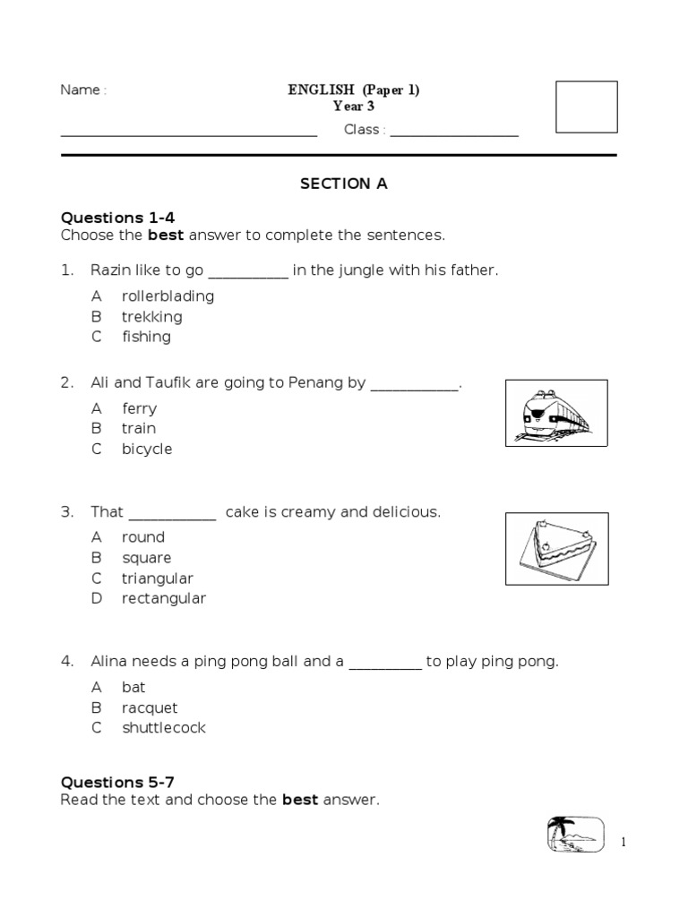Soalan english paper 1 year 3.